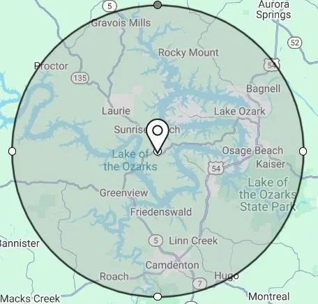 While we’d love to serve the entire Lake of the Ozarks area, some locations fall outside our standard service range. To offset travel expenses, a travel fee of $1.50 per mile applies to any shoot requiring more than 50 miles round trip, up to a maximum travel distance of 200 miles round trip.